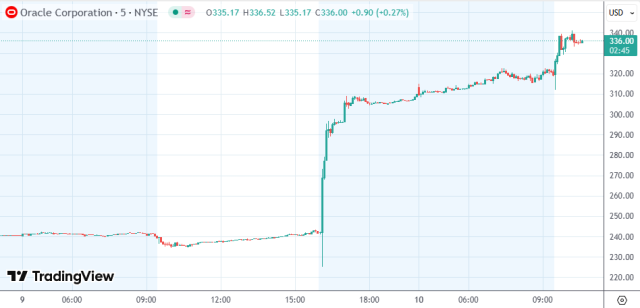 数据显示,这使埃里森的总财富升至3640亿美元,逼近马斯克的3840亿美元。如果这一涨幅在周三美股开盘后仍能保持,将创下有史以来单日最大财富增长纪录,或将成为财经史上的重要事件。