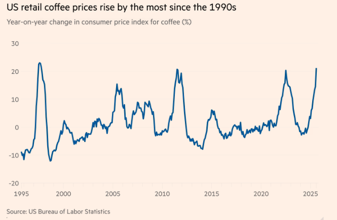 美国八月咖啡价格创本世纪最大涨幅,关税加剧供应短缺