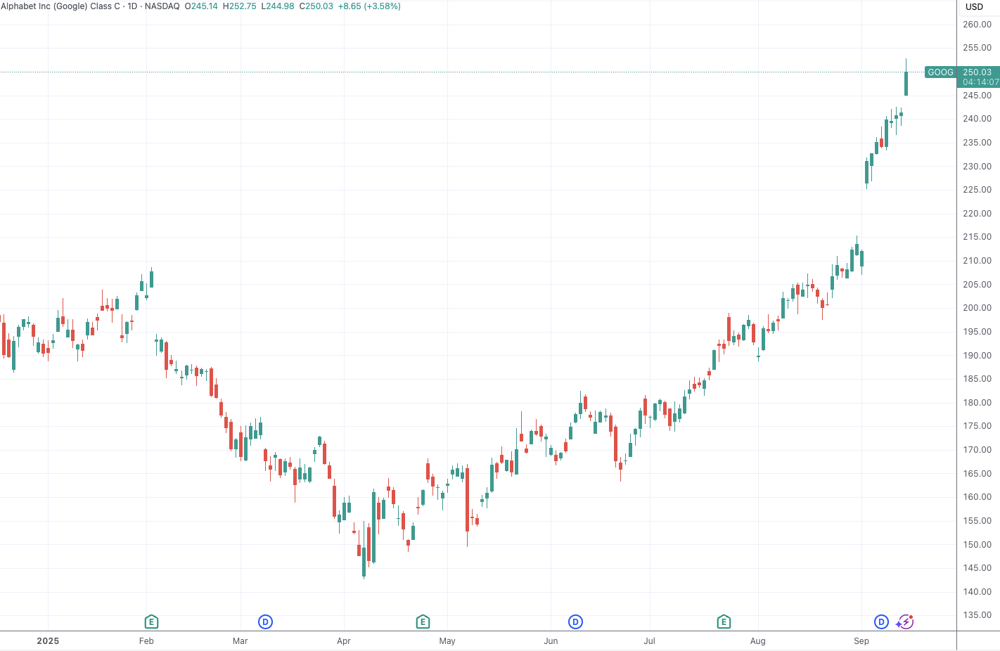 除了4月以来的市场整体反弹外,Alphabet也有自己的多重利好,这些利好因素共同点燃了投资者的热情。本月初,法官就Chrome浏览器反垄断诉讼作出裁决,谷歌必须与竞争对手共享更多数据,但无需出售Chrome浏览器,同时谷歌与苹果的巨额“默认搜索引擎交易”也得以保留,为谷歌的未来发展奠定了坚实基础。