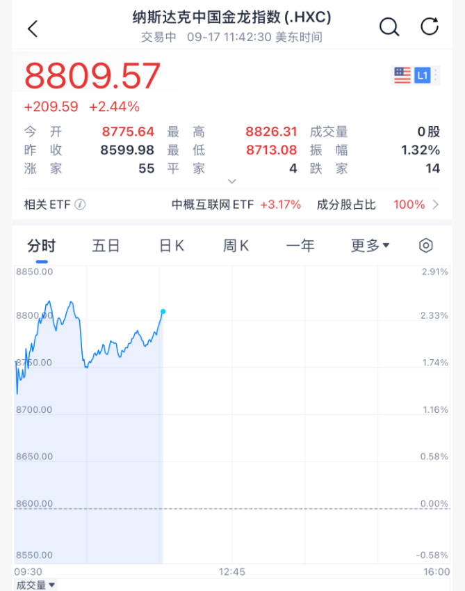 美联储降息在即,美股分化中概股大涨,市场押注降息幅度