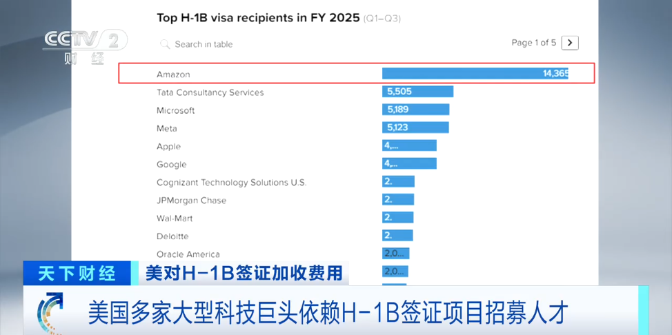 美科技巨头:暂停任何离境计划。亚马逊、谷歌、特斯拉、微软和Meta等科技巨头,一直依赖H-1B签证项目来雇用包括软件开发工程师在内的外国员工。据CNBC报道,在2025财年前三个季度,仅亚马逊一家公司获批的H-1B签证就超过14000个,微软和Meta也各有超过5000个获批。