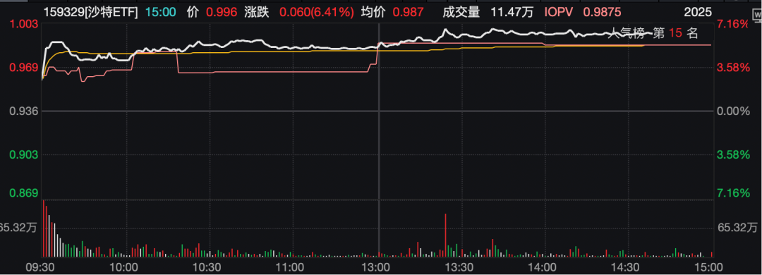 截至记者发稿,沙特全指飙升4.42%,多只权重股权涨幅超9%,市场热情高涨。值得关注的是,两只在国内交易所上市的沙特ETF——南方基金南方东英沙特ETF(159329.SZ)和华泰柏瑞南方东英沙特ETF(520830.SH)今日涨幅均超6%,投资者热情被点燃。