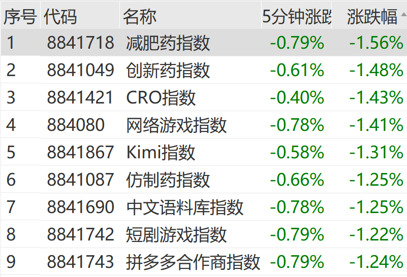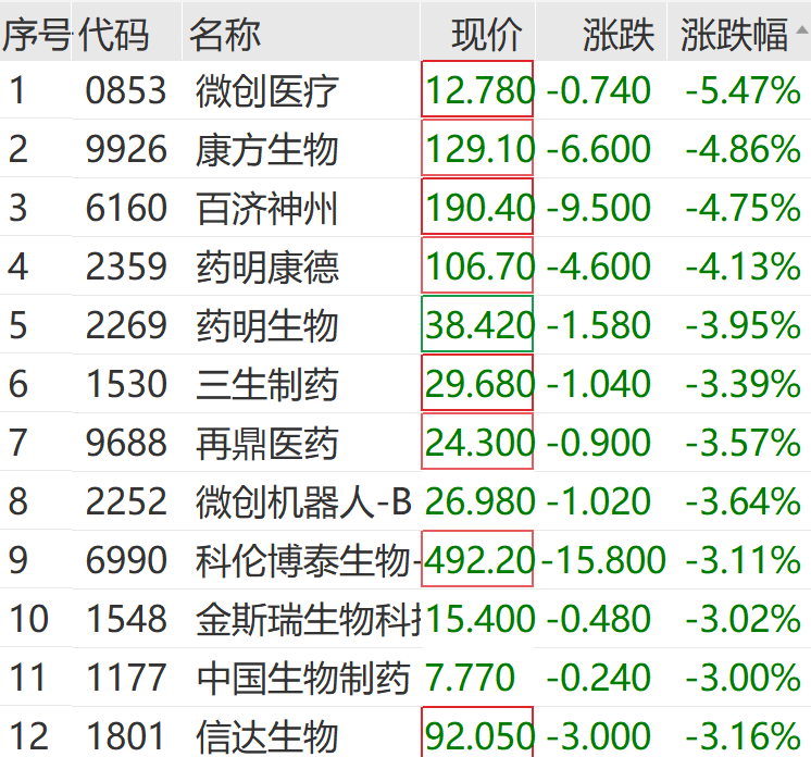 港股方面,恒生生物科技指数开盘跌近2%,开盘后震荡下行。微创医疗、康方生物、百济神州、药明生物、药明康德等均有明显跌幅。