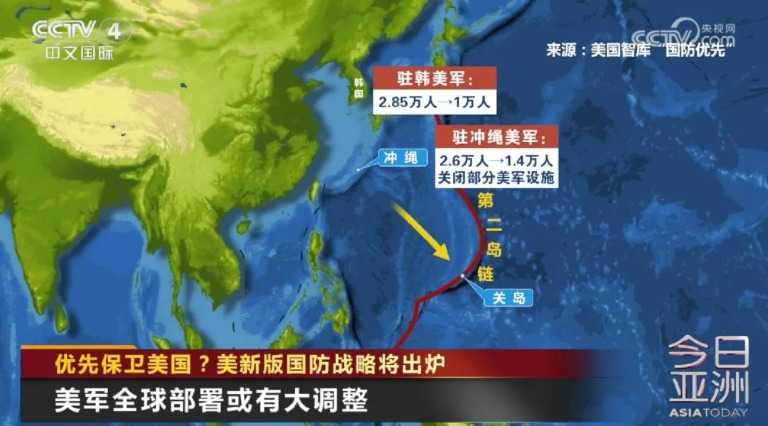 减少驻韩美军和驻冲绳美军人数,同时将驻冲绳的部分美军部队转移到日本其他地方和第二岛链,韩国和冲绳的防御任务将主要由韩军和日本自卫队承担。有台湾专家认为,这一部署变化意味着美国以后可能弃守“第二岛链”以西。