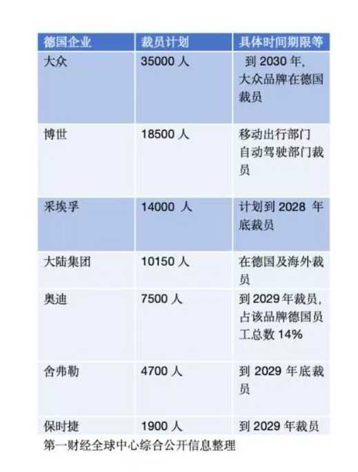 同时,德国汽车制造商在电池技术上投入了数十亿欧元,却发现向电动汽车的转变速度低于预期。这些压力迫使德国制造商不得不进行痛苦裁员。除了博世,大陆集团、舍弗勒集团和采埃孚集团也在削减岗位和开支,大众汽车、保时捷集团和福特汽车公司同样在裁员和减产。由于需求疲软,大众汽车正在限制产量,并暂时关闭两家德国电动汽车工厂。同时,大众汽车正在德国进行大规模重组,并表示到2030年要在德国裁员3.5万人。保时捷上周宣布退出电动汽车市场,并发布了今年第四次盈利预警。大众旗下的奥迪也宣布裁员数千人,原因是豪华电动汽车销量不佳。美国的车企福特本月早些时候表示,由于需求疲软,其德国科隆电动汽车工厂将再裁1000人,该公司一直在欧洲稳步缩减开支,削减产量、裁员并关闭运营,精简长期落后于北美业务的部分。据德国汽车工业联合会 (VDA)数据,过去两年,德国汽车行业总体上已裁撤约5.5万个工作岗位。到2030年,预计还会有数万个岗位消失,而该行业目前雇佣了超过70万名员工。