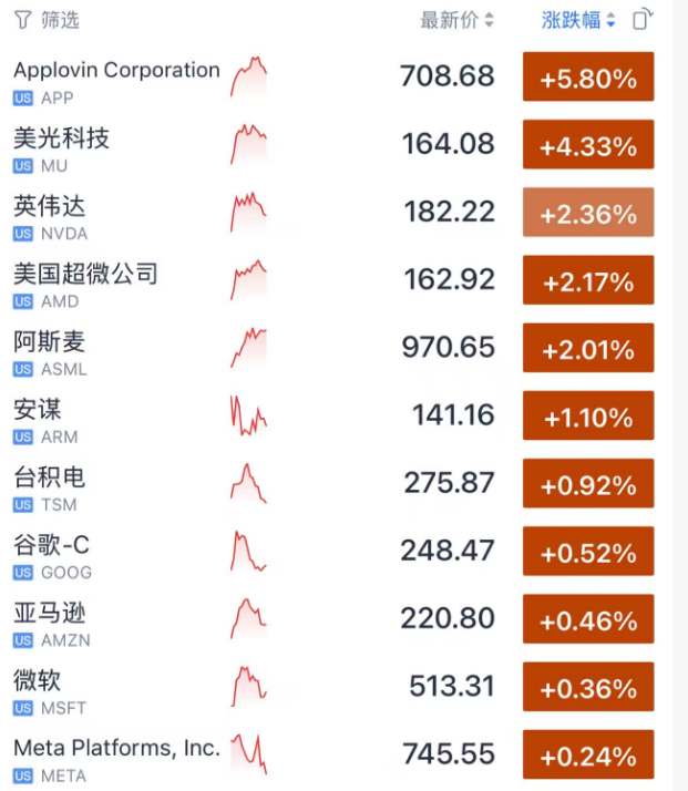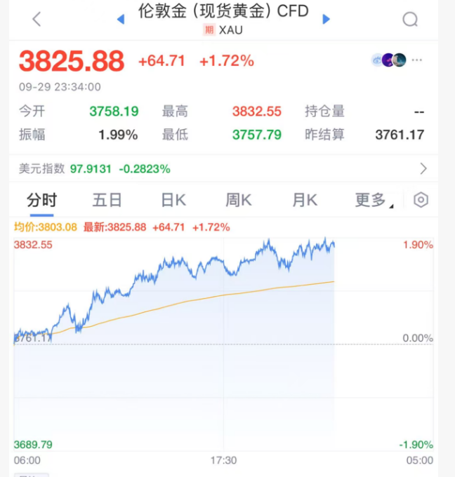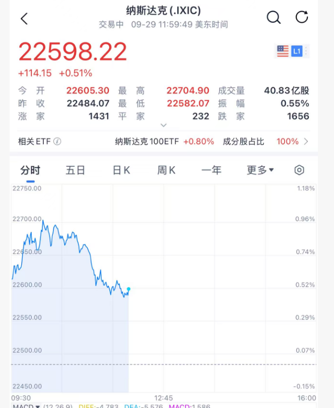 9月29日晚间,美股涨跌不一,道指微跌,纳指一度大涨近1%,但随后小幅跳水。受英伟达、AppLovin和微软走强带动,纳斯达克100指数一度涨近1%,美股科技板块表现抢眼。同时,金价创下新高,令美国财政部所持黄金的市值突破1万亿美元。