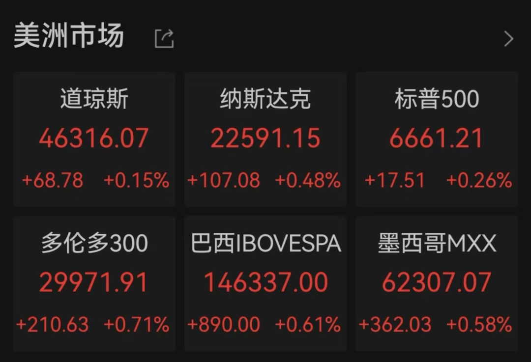 当地时间9月29日,美股三大股指再次小幅收涨。Wind数据显示,截至收盘,道指涨0.15%报46316.07点,标普500指数涨0.26%报6661.21点,纳指涨0.48%报22591.15点。