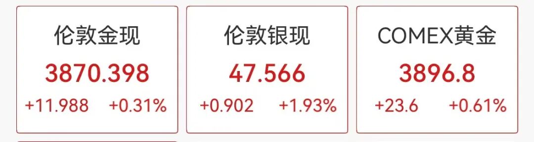 美债收益率出现跳水,10年期美债收益率跌5.6个基点。美元指数盘中急剧跳水,跌幅一度超0.3%。现货黄金涨幅收窄,最新报3870.398美元/盎司,日内曾一度站上3895美元关口。现货白银涨幅扩大近2%,报47.566美元/盎司。