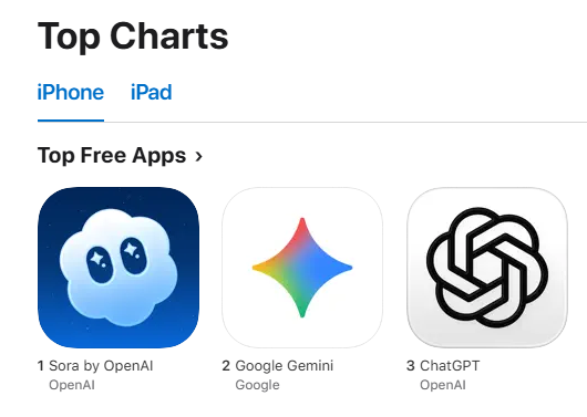 OpenAI Sora应用登顶苹果榜单,引领AI社交新潮流