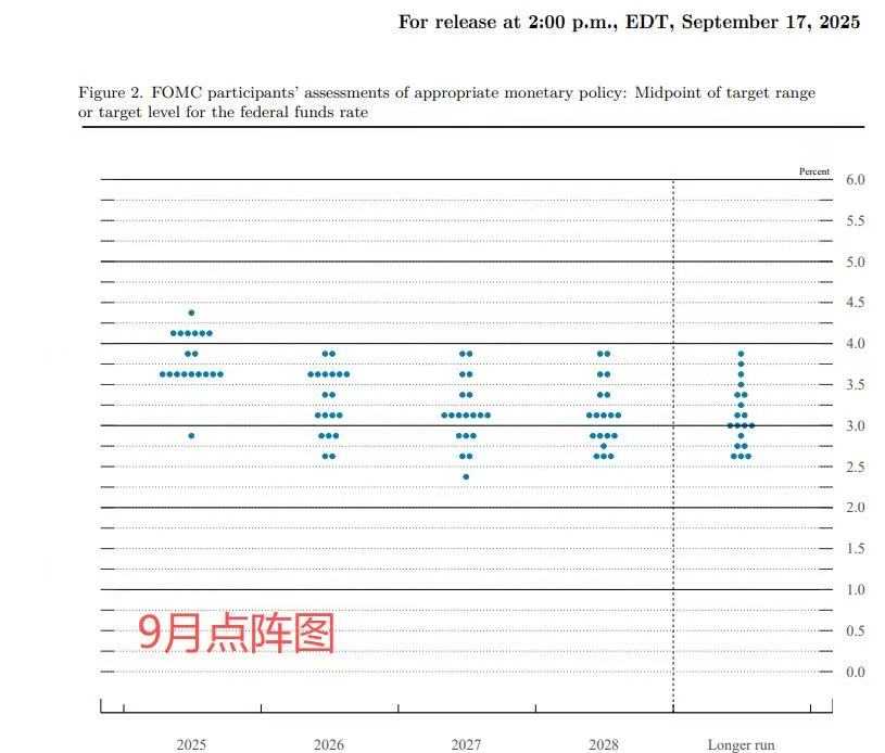 9月的“点阵图”显示,19名官员中有6人预测2025年仅会降息一次或不应该降息。对于意见纷杂的美联储而言,下一次议息会议将在10月28-29日进行,届时降息政策走向或将更加明朗。
