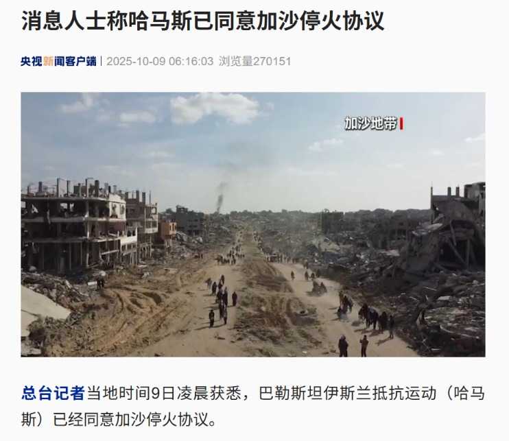 据央视新闻报道,总台记者当地时间9日凌晨获悉,巴勒斯坦伊斯兰抵抗运动(哈马斯)已经同意加沙停火协议,这一停火协议的达成,对国际局势稳定意义重大。