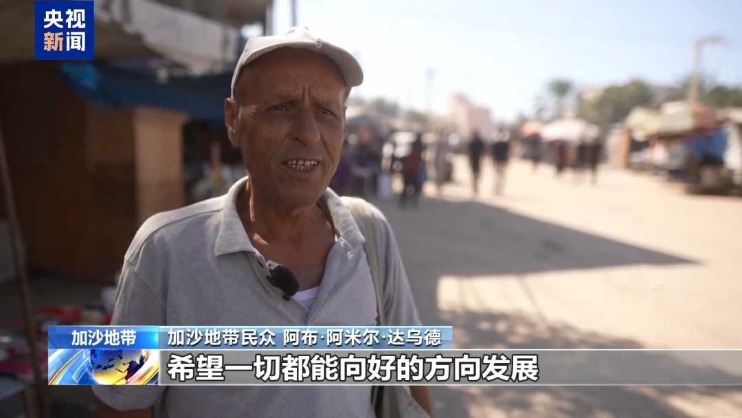 加沙地带民众马哈茂德·哈穆达:我们希望事情能朝好的方向发展,和平能够降临。这一期待体现了加沙地带人民对于未来生活的美好憧憬。