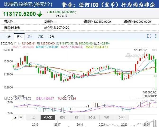 富时A50期指连续夜盘收跌4.26%,报14340点。隔夜欧洲主要股指集体收跌,欧洲斯托克50指数跌1.69%,英国富时100指数跌0.87%,法国CAC40指数跌1.53%,德国DAX30指数跌1.68%,富时意大利MIB指数跌1.74%。比特币一度大跌13%,跌破110000美元,截至发稿,过去24小时内下跌9.16%。根据Coinglass的数据,过去24小时内约有100亿美元的加密押注被清空,为至少自今年4月初以来最大的一轮强制平仓浪潮。