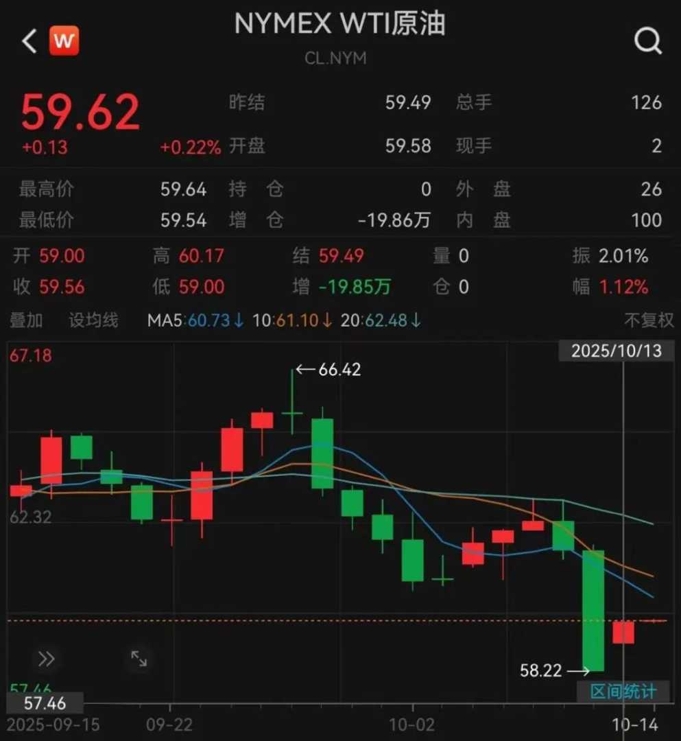 国际黄金和白银延续涨势。周一,COMEX黄金收涨3.24%,报收于4130美元/盎司,再创新高。盘中点位最高突破4137美元/盎司。市场对伦敦银流动性枯竭的担忧不断升温。伦敦银现涨4.39%,报收于52.33美元/盎司。高盛在报告中指出,白银市场流动性较弱,其规模约为黄金的九分之一,因而放大了价格波动。报告写道:“由于没有央行长期买盘支撑银价,一旦投资资金出现短暂撤出,价格可能剧烈回调,同时缓解了此前推动行情的伦敦供需紧张。”近期贸易摩擦再度升温,助推避险情绪上升。美国总统特朗普上周威胁对中国商品征收额外100%关税,引发市场动荡。避险需求高涨使得黄金和白银成为资金避风港(SEO关键词4:避险情绪高涨)。国际油价跌势缓解。周一,NYMEX WTI原油价格涨超1%,收盘价格仍处于60美元/桶以下。