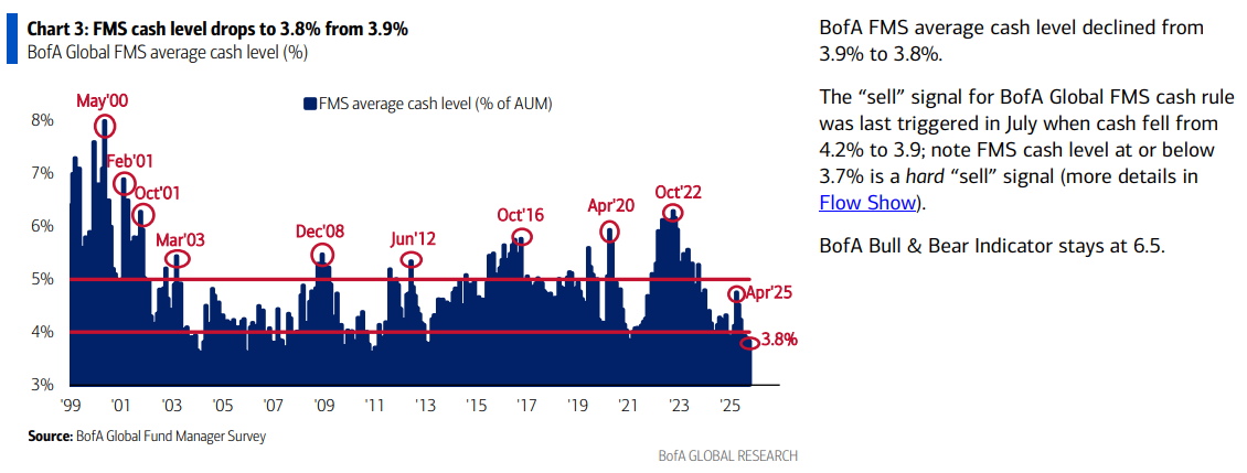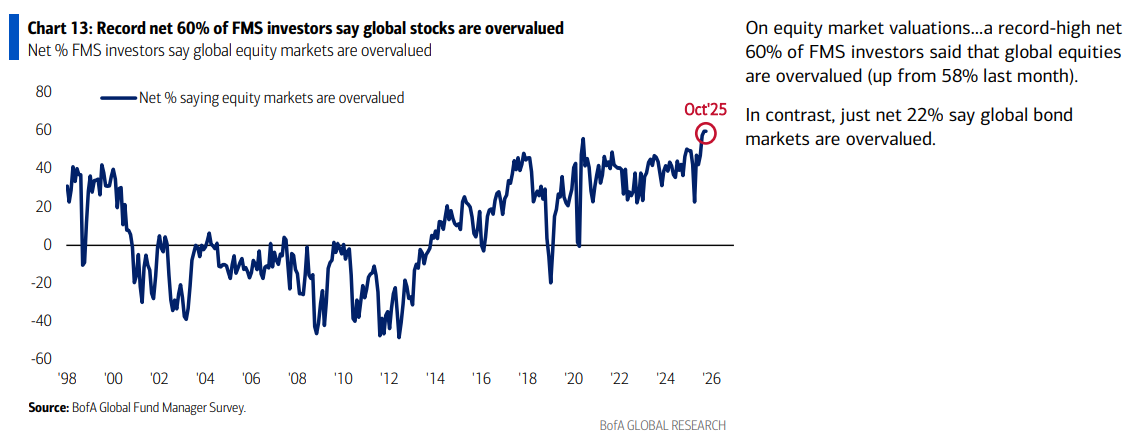 美银调查:全球基金经理乐观情绪高涨,AI泡沫担忧空前