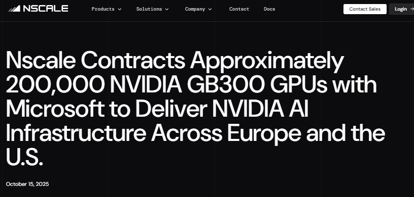 新闻稿称,Nscale将于未来12至18个月内,为微软在美国得克萨斯州的数据中心部署约10.4万枚GB300 GPU,并将在葡萄牙的Start Campus数据中心再交付约1.26万枚GPU。这已经是过去两个月内,Nscale与微软达成的第四笔此类交易。上月,Nscale宣布与微软建立合作伙伴关系,在洛顿打造英国最大的AI超级计算机,之后又宣布在挪威北部启动“星际之门挪威”,展现了其在AI基础设施布局上的雄心。