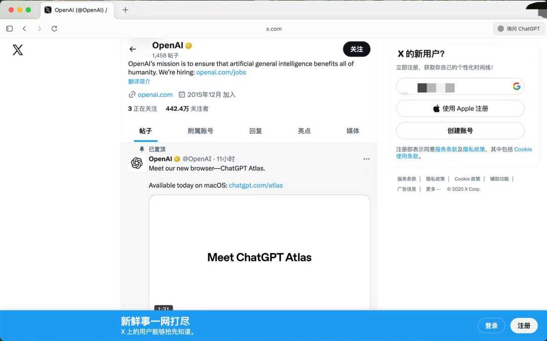 OpenAI推出AI浏览器ChatGPT Atlas,AI搜索竞争升级