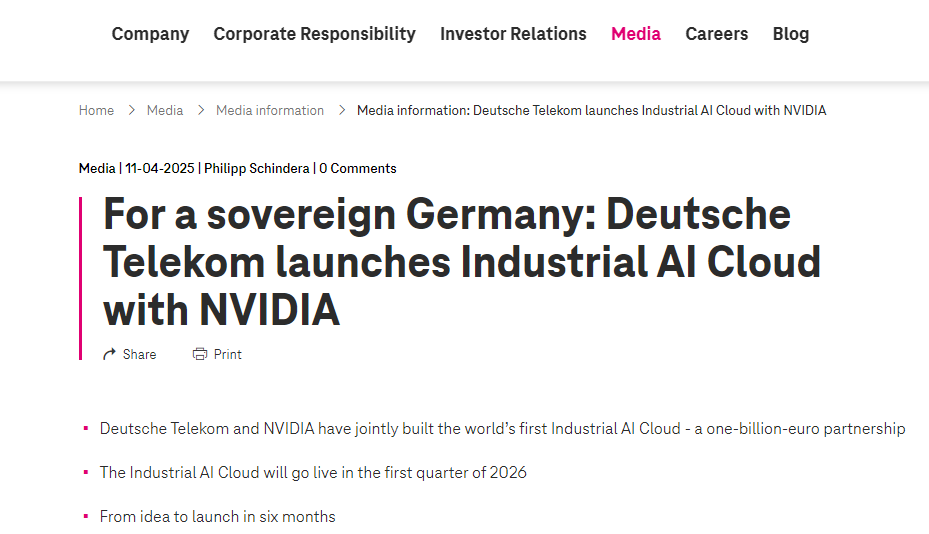 德国电信目前正与多家公司磋商,探讨共同参与建设所谓“AI超级工厂”的可能性。但整体进展依然缓慢,欧盟尚未明确如何评审投标及分配相关资金。
