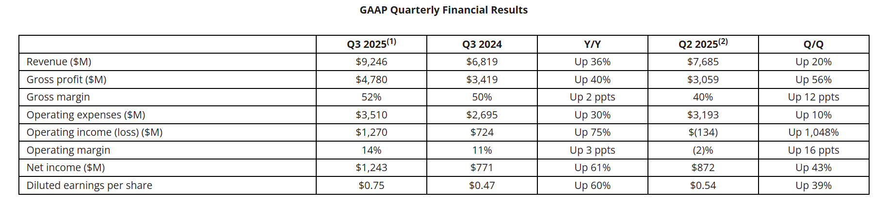 “我们本季度业绩斐然,营收和盈利均创历史新高,这反映了市场对我们高性能EPYC和Ryzen处理器以及Instinct AI加速器的广泛需求。我们第三季度创纪录的业绩以及强劲的第四季度预期,标志着我们的增长轨迹明显提升。随着计算业务不断提升,数据中心AI业务快速成长,将显著公司推动营收和盈利增长,我们对此充满期待。”