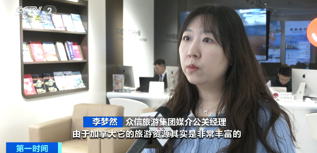众信旅游集团媒介公关经理李梦然:加拿大的旅游资源非常丰富,我们明年打算根据加拿大四季鲜明的特色,打造不同的旅游产品,比如春季我们会做赏郁金香、赏花的产品,秋季会做国家公园赏枫叶的产品,冬天还会开发一些冰雪、赏极光的产品,丰富游客体验。