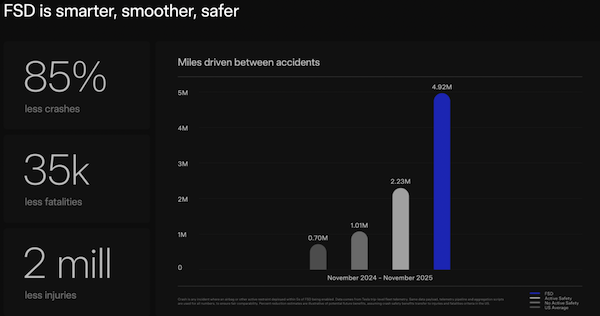 当地时间11月6日,马斯克宣布特斯拉将支持FSD功能车主开车时发短信,同时“无监督FSD”功能上市时间推迟至2026年。特斯拉公布FSD开启下碰撞数据,但遭业内质疑,其奥斯汀Robotaxi项目数据也显示碰撞情况。