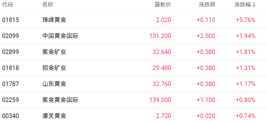 今日港股市场:黄金股与石油股表现强势。截至收盘,珠峰黄金(01815.HK)涨5.76%、中国黄金国际(02099.HK)涨1.94%、紫金矿业(02899.HK)涨1.81%。消息面:万国国际矿业公告,其创始人兼主席高明清于11月4日增持101万股公司股份,涉资近3000万港元。同时,道富投资管理上调了金价预测,其乐观情景预测看至每盎司4100-4500美元。