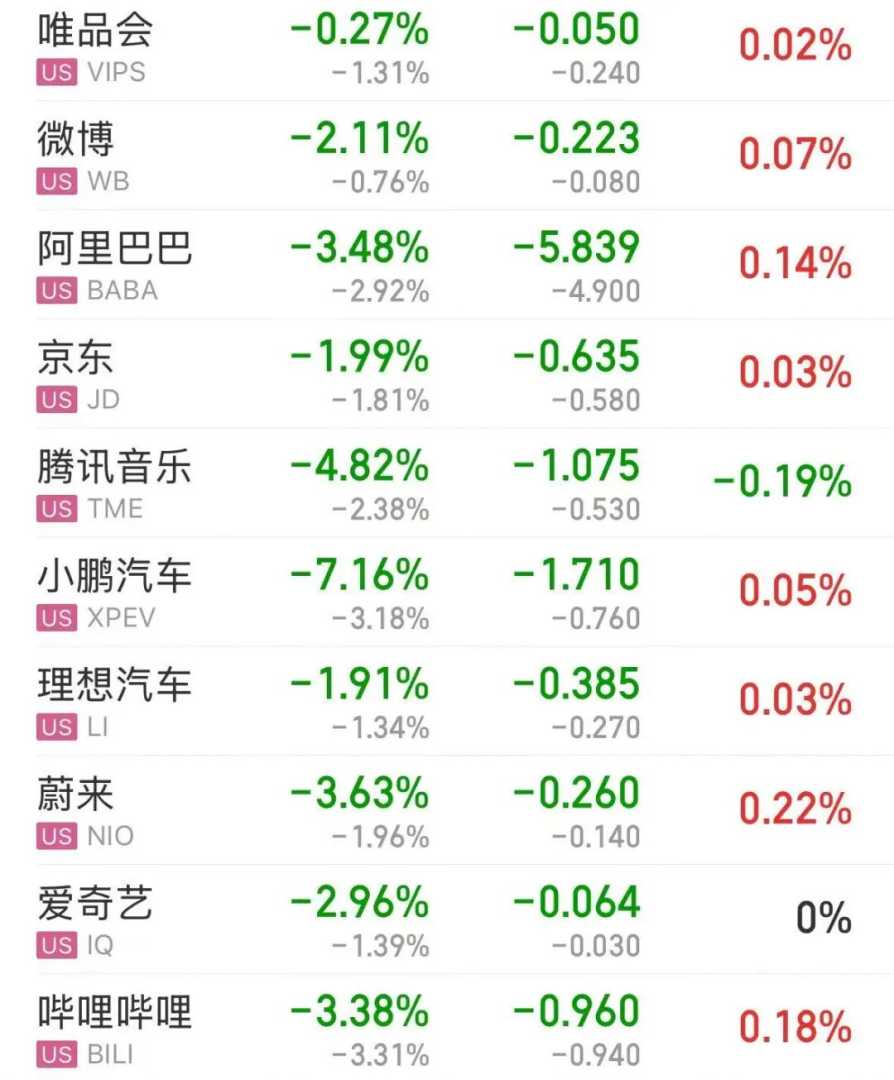 热门中概股多数下跌,小鹏汽车跌超7%,阿里巴巴、蔚来、哔哩哔哩跌超3%,微博、爱奇艺跌超2%,京东、理想汽车跌超1%。