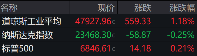 当地时间周二,美国股市涨跌不一,道指涨1.18%,标普500指数涨0.21%,纳指跌0.25%。美股“七巨头”走势分化,英伟达下跌2.96%,软银在财报中披露,已于10月出售全部3210万股英伟达股份,交易金额约58亿美元,市场担忧AI板块估值偏高。微软上涨0.53%,亚马逊上涨0.28%,苹果上涨2.16%,谷歌母公司Alphabet上涨0.42%;而Meta下跌0.74%,特斯拉下跌1.26%。热门中概股表现分化,纳斯达克中国金龙指数微跌0.06%。小鹏汽车涨超7%,网易、理想汽车涨逾1%;阿里巴巴跌超3%,哔哩哔哩和蔚来跌逾1%。