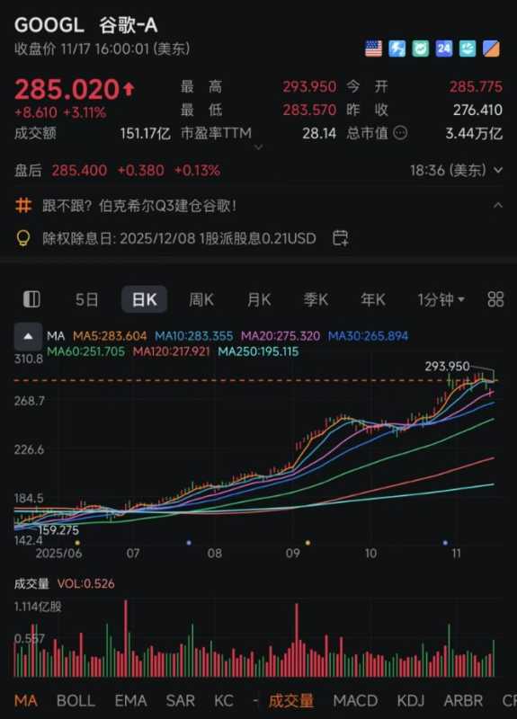 谷歌逆势收涨3%,盘中涨幅一度超过6%。此前,巴菲特旗下伯克希尔·哈撒韦首次建仓谷歌A类股,谷歌也成为了伯克希尔的第十大重仓股。眼下,美联储12月是否再度降息牵动着全球投资者的目光。对此,美联储内部已有分歧显现。美联储理事沃勒周一重申其支持12月会议上再次降息的观点,原因是美国劳动力市场疲软以及货币政策在伤害中低收入消费者。而美联储副主席杰斐逊对12月是否降息则持谨慎态度,认为美联储在进一步宽松上应“缓步前行”。