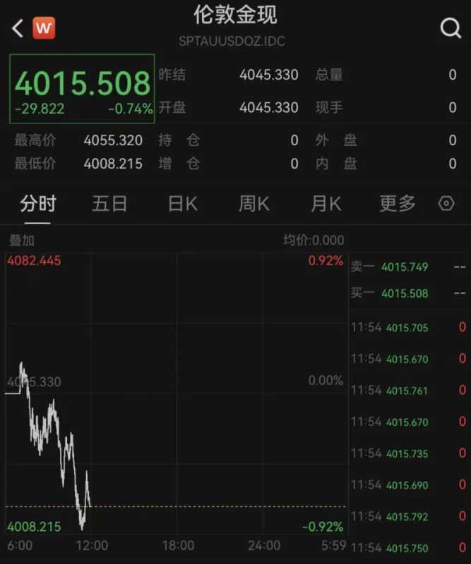 除比特币之外,黄金市场也未能幸免,黄金也直线跳水,截至发稿,现货黄金跌幅近0.8%,逼近4000美元关口,COMEX黄金更是跌超1%,黄金市场同样面临压力。
