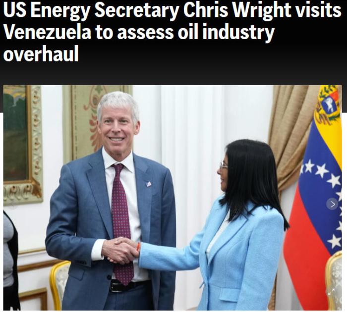 美国能源部长赖特于2月11日抵达委内瑞拉,对该国石油行业进行实地考察。在加拉加斯,他与委内瑞拉代总统罗德里格斯进行了会晤,并计划在此期间与委内瑞拉政府官员及石油企业高管会面。