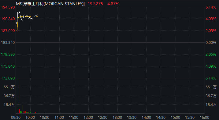 4月15日,摩根士丹利(以下或称“大摩”)公布2026年第一季度财务业绩。公司主要财务指标均实现大幅增长。当天美股开盘后,摩根士丹利股价直线拉升,盘初一度涨超6%,截至发稿,涨幅收窄至5%左右。