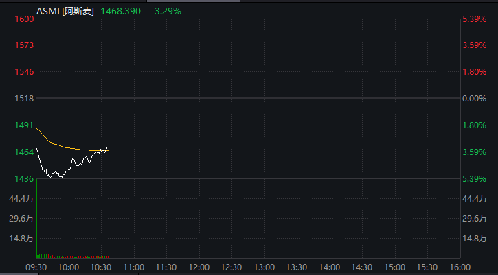 个股方面,全球光刻机巨头阿斯麦盘初一度跌超5%。消