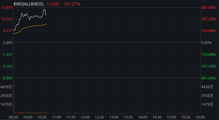 鞋履巨头ALLBIRDS股价大涨,最高涨超460%,并多次触发熔断。