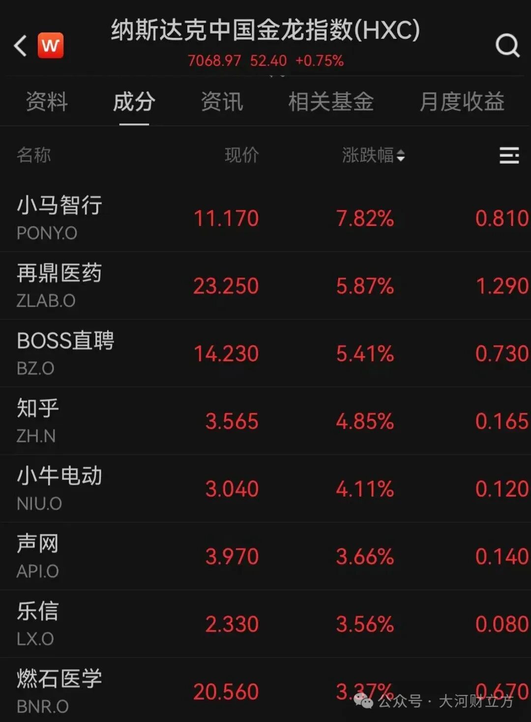 热门中概股多数上涨,纳斯达克中国金龙指数涨0.75%。百度涨超2%,网易涨2%,阿里巴巴、汽车之家涨超1%,拼多多、哔哩哔哩小幅下跌。
