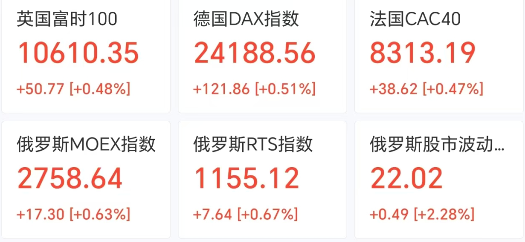 欧洲股市、美股期货全线上涨,中概股盘前走强,百度涨超4%