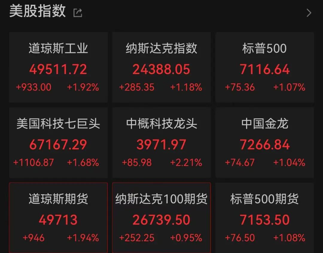 中国资产同步大涨,纳斯达克中国金龙指数涨超1%,万得中概科技龙头指数涨超2%。小马智行涨超8%,阿里巴巴涨超3%,拼多多、腾讯控股涨超2%。