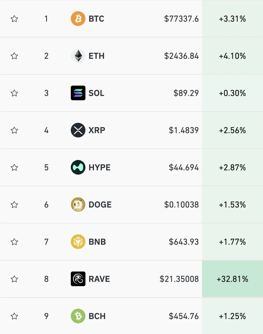 加密货币集体上涨。比特币涨至77000美元上方,过去24小时内涨3.31%;以太坊涨至2436.84美元,日内涨超4%。最近24小时,全球共有超 16.4万人被爆仓 ,爆仓总金额为7.49亿美元。