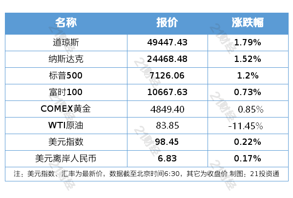 纽约股市三大股指4月17日上涨。截至4月17日收盘,道琼斯工业平均指数比前一交易日上涨868.71点,收于49447.43点,涨幅为1.79%;标准普尔500种股票指数上涨84.78点,收于7126.06点,涨幅为1.20%;纳斯达克综合指数上涨365.78点,收于24468.48点,涨幅为1.52%。