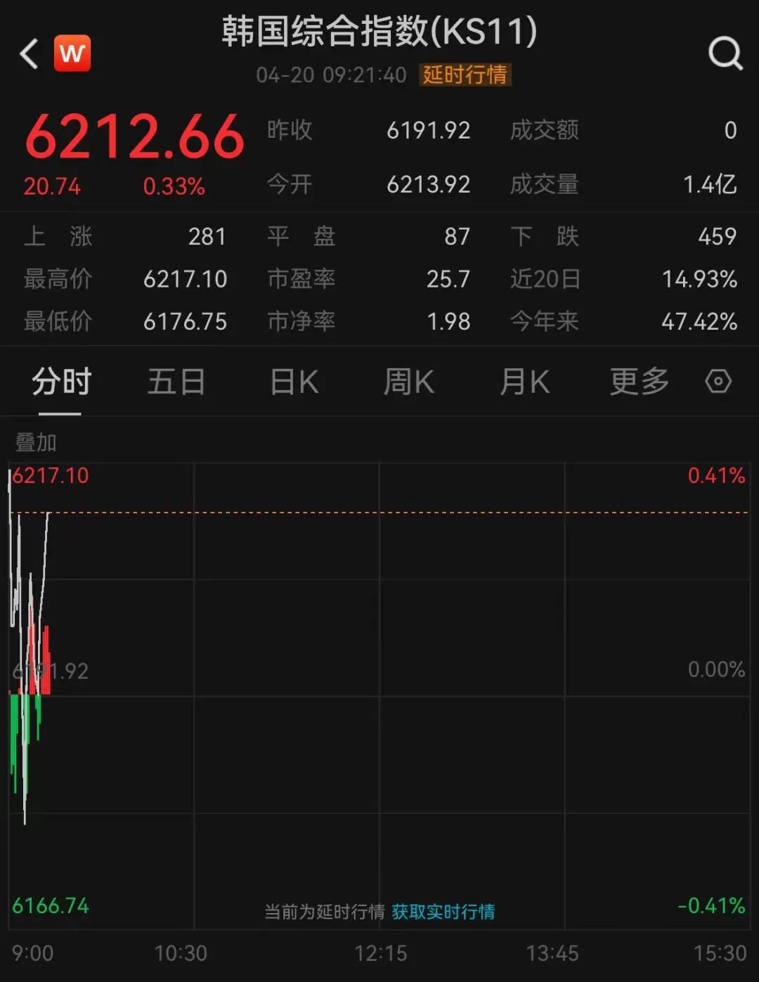 韩国综合指数上涨0.33%。