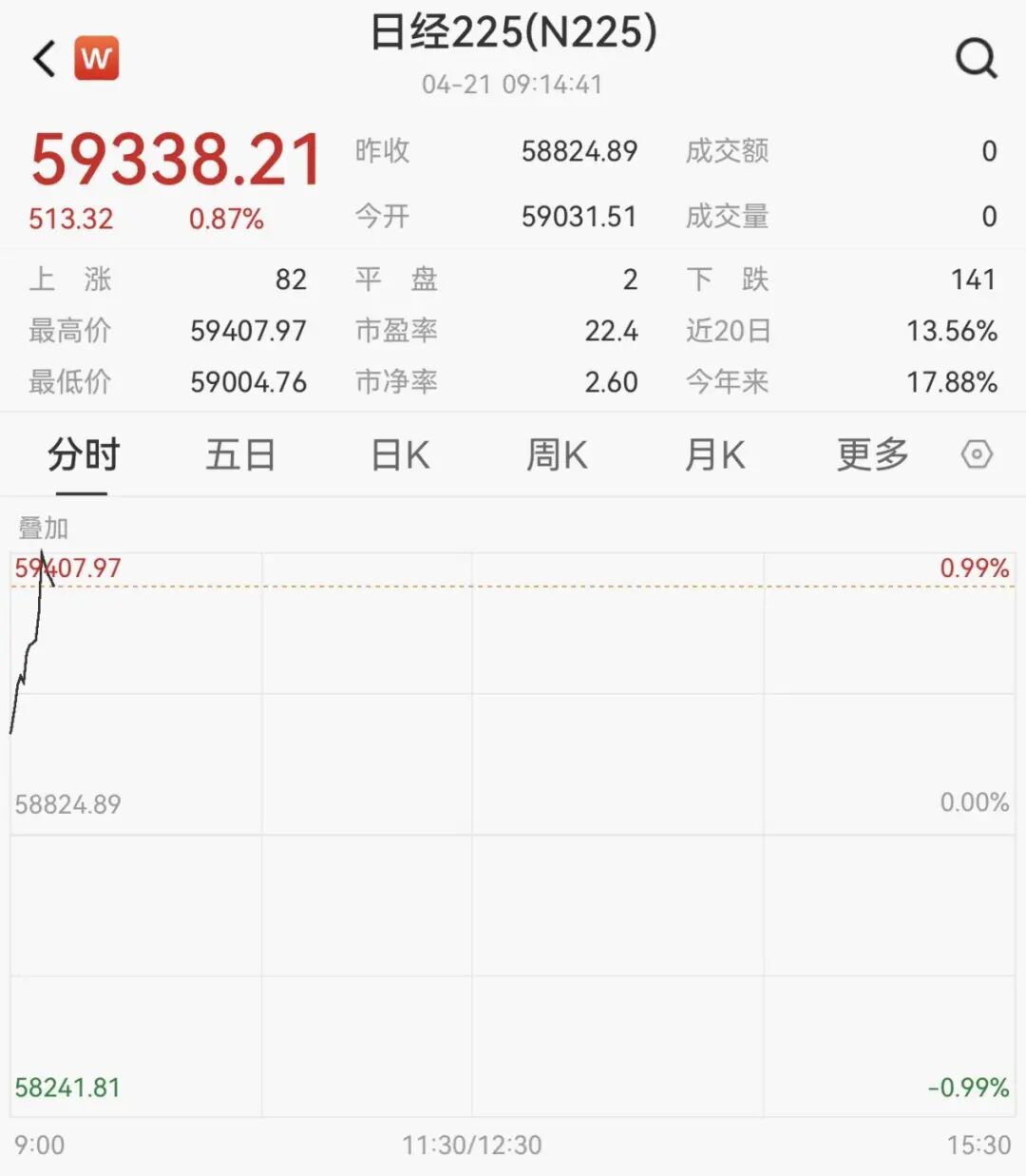 4月21日,受伊朗可能与美国会谈消息提振,日韩股市集体高开,韩国综合指数日内涨幅达2%,再创历史新高。