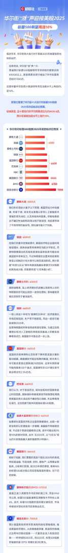 华尔街各大投行发布的美股2025年展望报告显示,普遍对美股明年走向持乐观态度,预计标普500指数将上涨约10%。