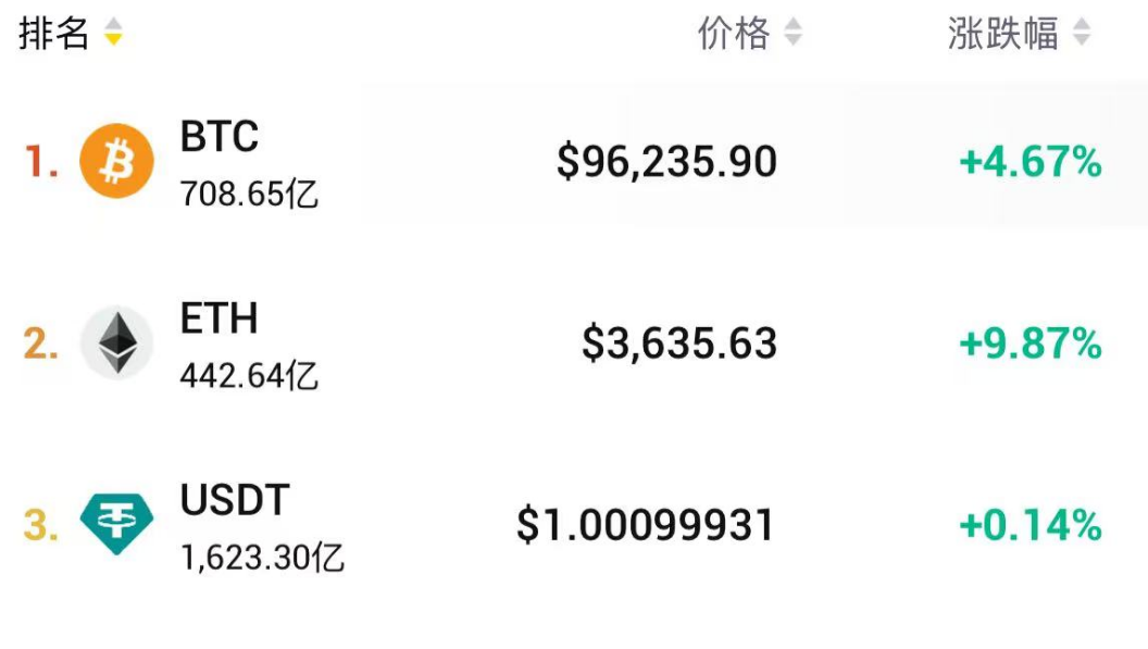 截至最新数据,比特币和以太坊的价格分别上涨4.67%和9.87%,分别报96235.90美元和3635.63美元。附图展示了比特币和以太坊的走势。