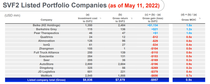 财报还显示,愿景基金一期的前三大亏损来源分别是滴滴、Wework和Grab,而愿景基金二期的前三大亏损则来自Wework、京东物流和叮咚买菜。