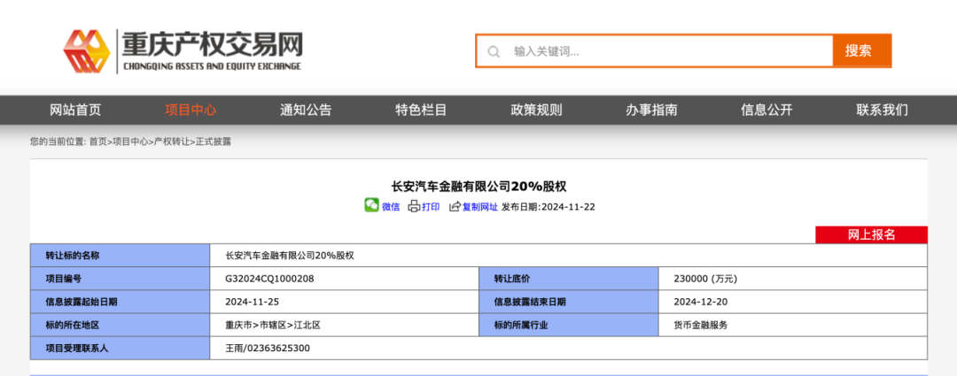 日前,重庆产权交易网发布了一则重要消息,长安汽车金融的第四大股东——重庆渝富资本运营集团,计划将其所持有的20%股权以23亿元的挂牌底价全部转让。