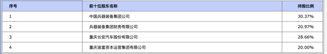 目前,长安汽车金融的股东包括中国兵器装备集团、重庆长安汽车股份有限公司等,其中前三家股东的持股比例分别为30.37%、28.66%和20.97%。