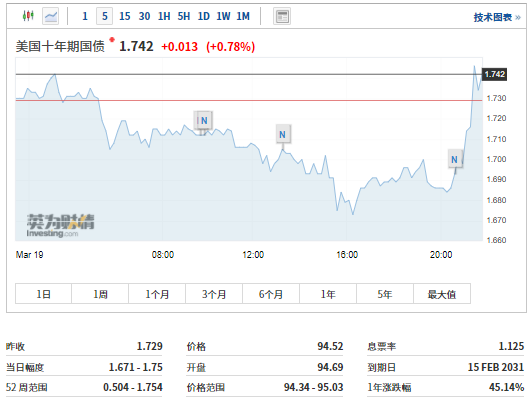 受美联储该政策影响,美国10年期国债收益率在短时间内迅速攀升,重新突破1.7%的关口。