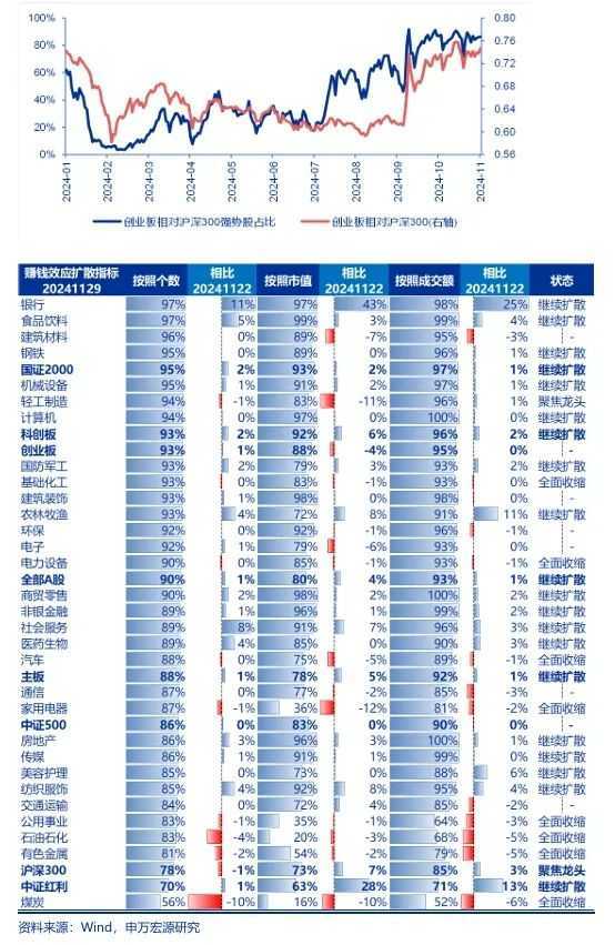 3. 反弹结构可能呈现“顺周期搭台,成长唱戏”的特点。核心消费成为最重要的顺周期资产,财政发力预期下股价可能具有弹性。交易性资金活跃度更高,推动主题活跃,小盘成长风格继续占优。