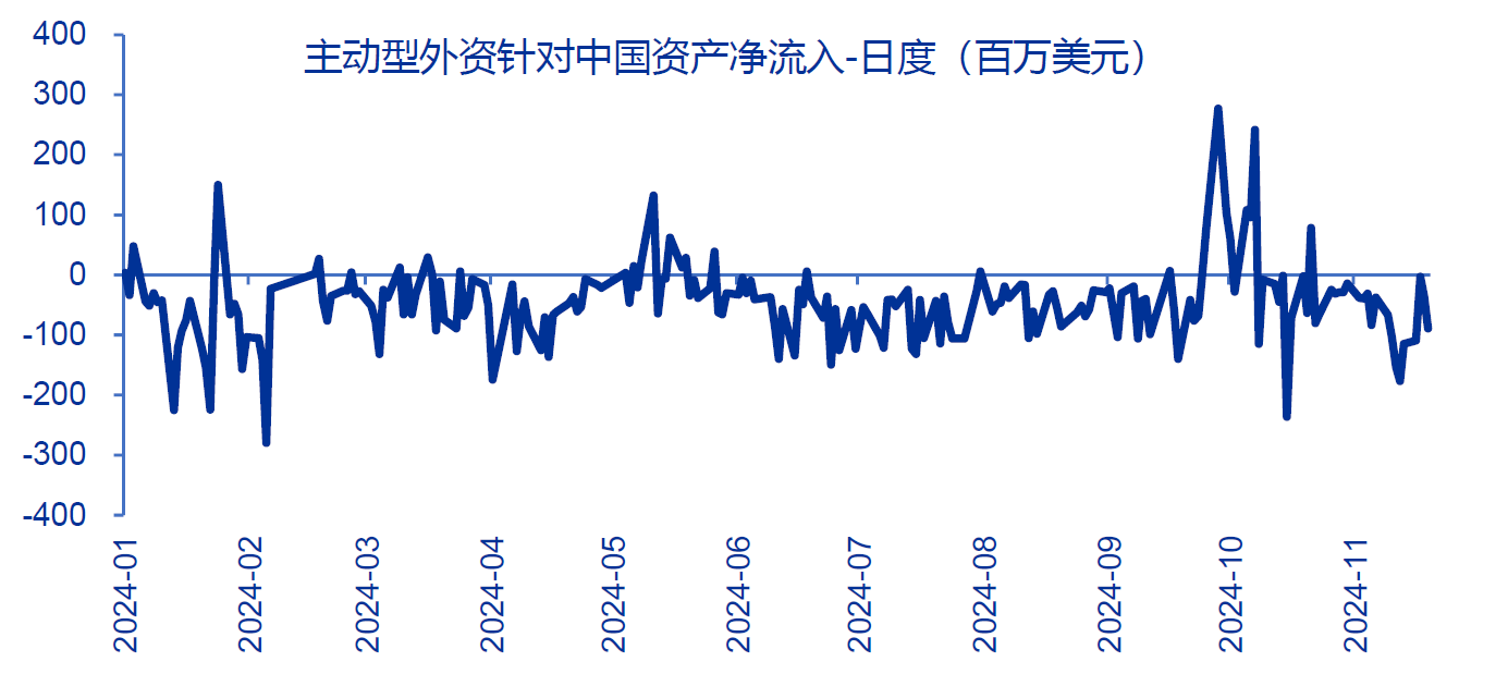 天弘基金分析指出,市场已从国内政策单边驱动转向特朗普交易与国内政策对冲的相对力量考量。因此,短期市场调整的直接原因在于增量资金流入放缓,外资呈现净流出态势,加之海外地缘冲突升级、特朗普即将上台引发的国内外政策对冲效应,基本面影响重新占据主导。