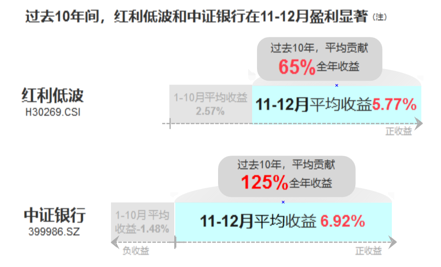 2、高股息资产年底超额收益显著:历史数据显示,年底持有红利资产可获得更高的超额收益。随着年末临近,包括北向资金在内的助力资金风险偏好降低,具有防御性的高股息板块投资价值凸显。推荐产品包括天弘中证红利低波100(A:008114;C:008115)。